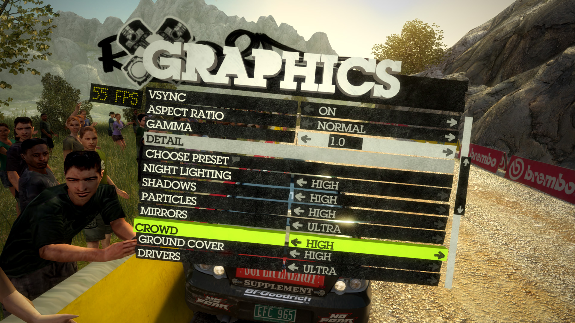 群衆の描画と違い,運転者描画にはDirectX 11のテッセレーションが用いられておらず,DirectX 10世代以下のGPUでもULTRA設定が選べる。