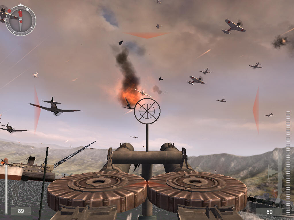 単フロート型の水上観測機。戦艦などの艦艇に搭載され,着弾観測や偵察などを行い,ときには救助活動でも用いられた。MoHPAでは戦艦アリゾナが転覆するときに,搭載されていたキングフィッシャーが転がり落ちるシーンが印象的だ。またタラワ環礁への上陸時は上空に見ることができる。