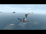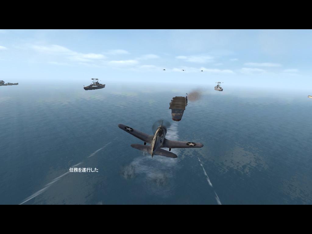 途中で日本軍の航空基地になっている小さな島を発見するので,無線塔,滑走路の日本軍機,入り江の船舶などを破壊する。しばらく進むと味方の空母……かと思いきや,敵の空母と護衛艦に発見されてしまう。ここでの操作は分かりづらいが,「F」キーで爆撃のロック解除,「[」キーで爆弾と魚雷を選択し,マウスの右クリックで投下する。操作性が悪いので難しいかもしれないが,うまく敵空母と護衛艦を破壊できたら,インディペンデンスを目指そう。空母に近付いたら着艦は自動で行われるのでご安心を。これでガダルカナルでの任務は終了だ。