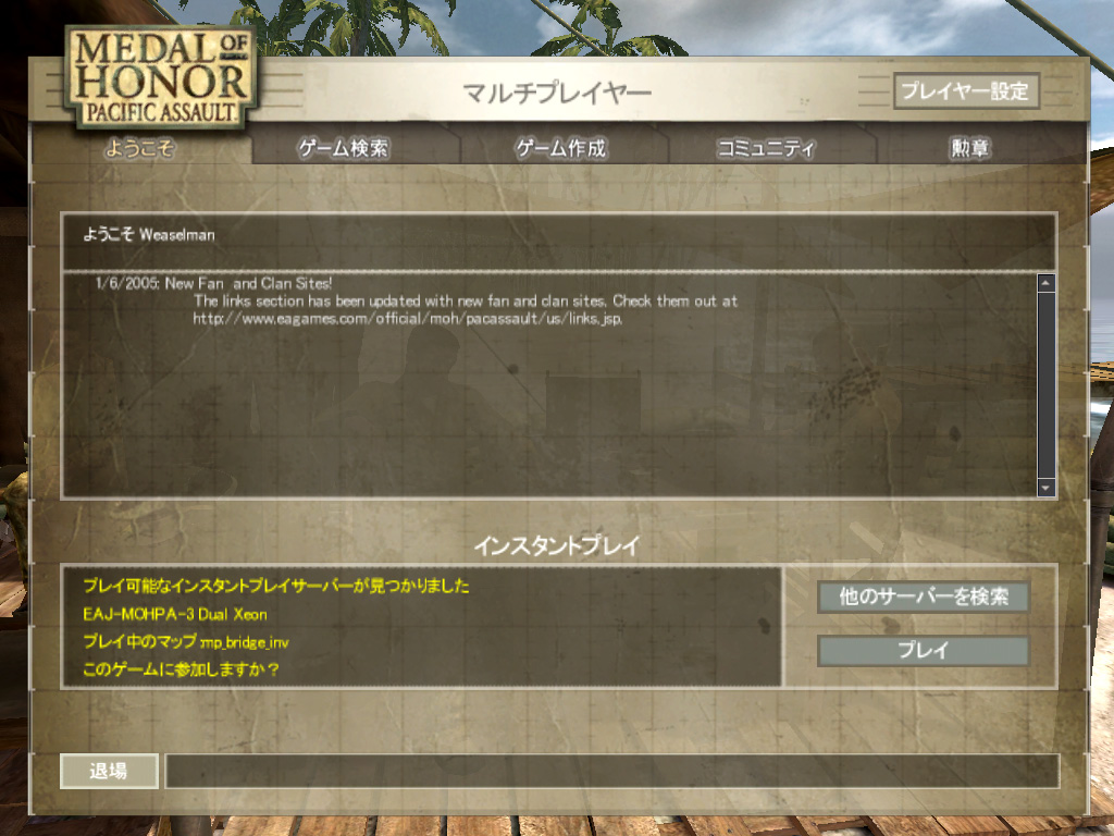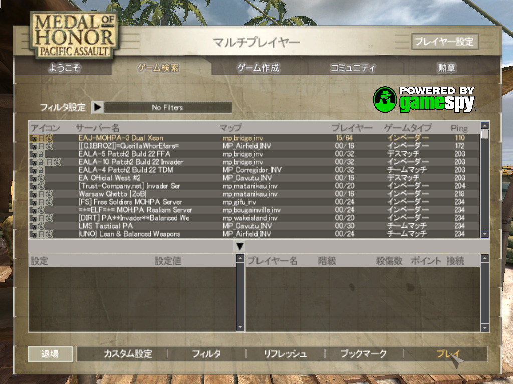 まずサーバーの選定だが,エレクトロニック・アーツが公式サーバーを稼動させているので,これを選択すれば間違いないだろう。なかでもMOHPAサーバー3号機は,インテルXeon 3.6GHzをデュアルCPU構成で,メモリはDDR2を2GBという非常に豪勢なマシンが使用されている。3号機はインベーダーモード専用で,これは最も人気のあるゲームモードなのでぜひ遊んでみよう。