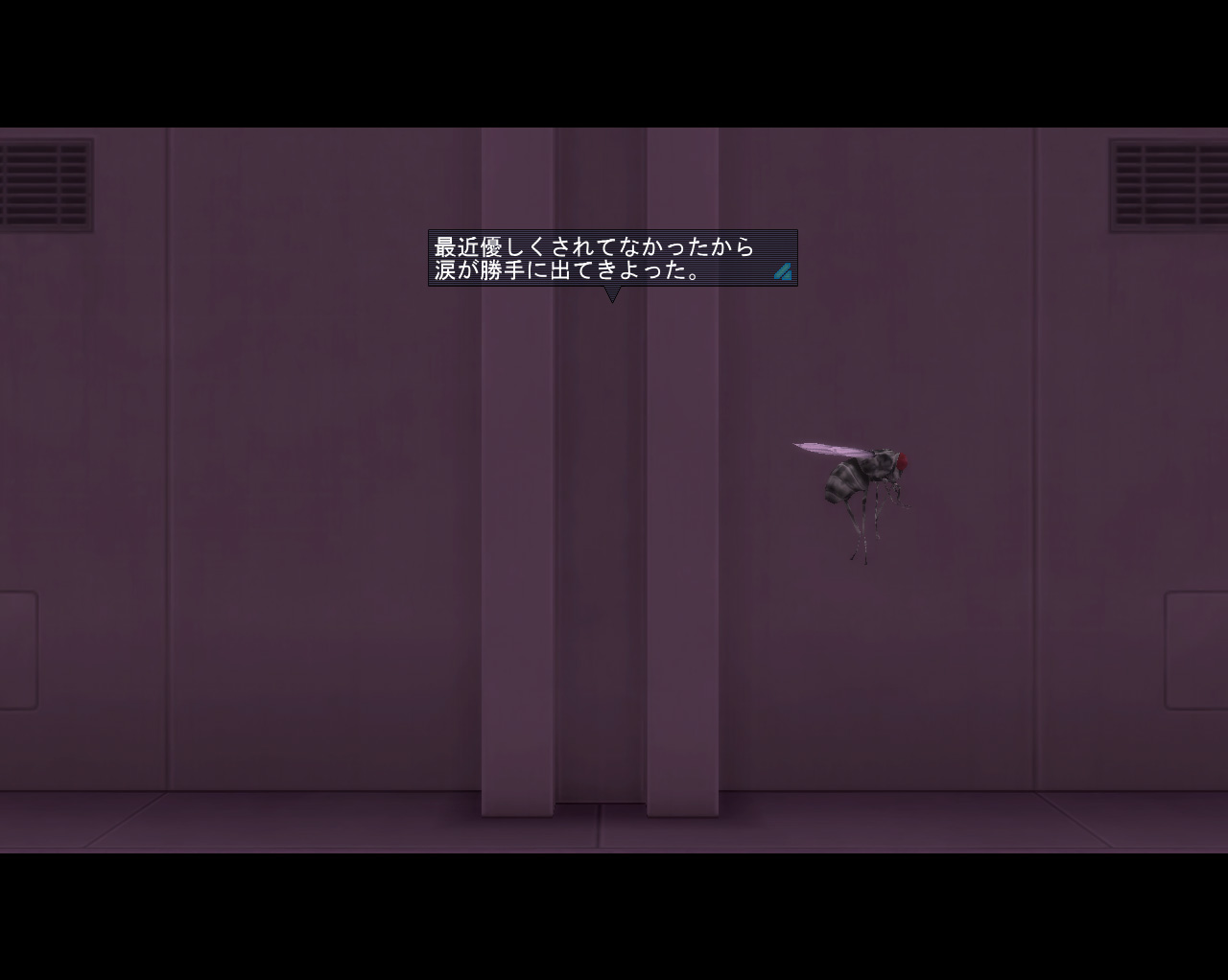 何しろ喋れる蝿と遭遇するなんて初めてのこと。どう対応すれば良いのか,少々考えてみる。つまんでみるか,捕まえてみるか……悩んだ末,撫でてみることにした。なんでそんな行動に出たのか,正直自分でも分からない。恐らく散々歩き回ったせいで脳が疲れていたのだろう。