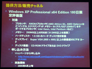 なお,Windows XP Professional x64 Editionのパッケージ販売は行われず,基本的にPCへのプリインストールか,パーツとのバンドル,一括購入者向けボリュームライセンスでの提供となる。本誌読者の場合だと,バンドル販売での入手が最も容易だろう。実勢価格は32ビット版Windows XP ProfessionalのOEMバンドル版と同等である。(佐々山薫郁)