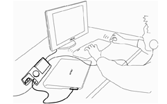 XG Stationの接続例(左)。通電中はXG Station内部の青色LEDなどが光る。この状態で,XG Stationとディスプレイを接続すると,ディスプレイにXG Stationの描画内容が出力されるという仕組みだ。右は接続のイメージ図。ヘッドセットなどもXG Stationと接続することが想定されているのが分かる