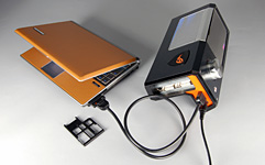 ※接続の外付けPCI Expressボックスに,グラフィックスカードが差してあるアイテム,ということになるだろう。ノートPC側のExpressCardスロットに差すことで,ノートPCとPCI Express x1接続。これにより“外付けグラフィックスカード”というか,
