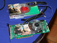 イベントでは,本邦初公開となるXG Stationにユーザーが群がった。端で聞いていた限り,「ASUSTeK製ノートPC以外でも動くのか?」という質問が,非常に多かった。右はイベントを訪れた報道関係者に公開された,「GeForce 8800 GTX」搭載の水冷&クロックアップ版カード「EN8800GTX AquaTank/HTDP/768M」。予想実売価格10万円前後で,限定的に出荷される見込み