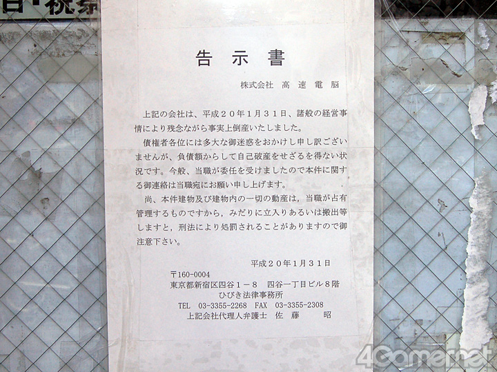 秋葉原のPCショップ,「高速電脳」が突然の閉店