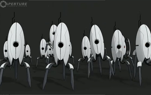 ET入選作品であるPortal 2: Turretsは,Portal 2に登場する架空の軍需産業企業Aperture Scienceが,同じくPortal 2に登場するTurret(機銃装置)を民生向けに改良して発売するというCM映像だ。通販番組チックに,Aperture Science CEOのCave Johnsonが声高らかに機銃装置の性能と外観バリエーションの豊富さを「物騒なこの世の中,大事な赤ちゃんのゆりかごの隣に置いてみては?」とアピールする内容になっている。