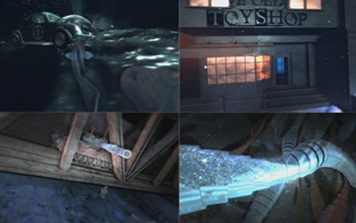一見,全てが3DCGに見えるこの作品だが,実はミニチュアのストップモーションや2Dアニメが組み合わせられたハイブリッド作品。CGの質感とミニチュアの質感が見事に融合し,CGアニメ作品の新しい可能性を垣間見せてくれている。