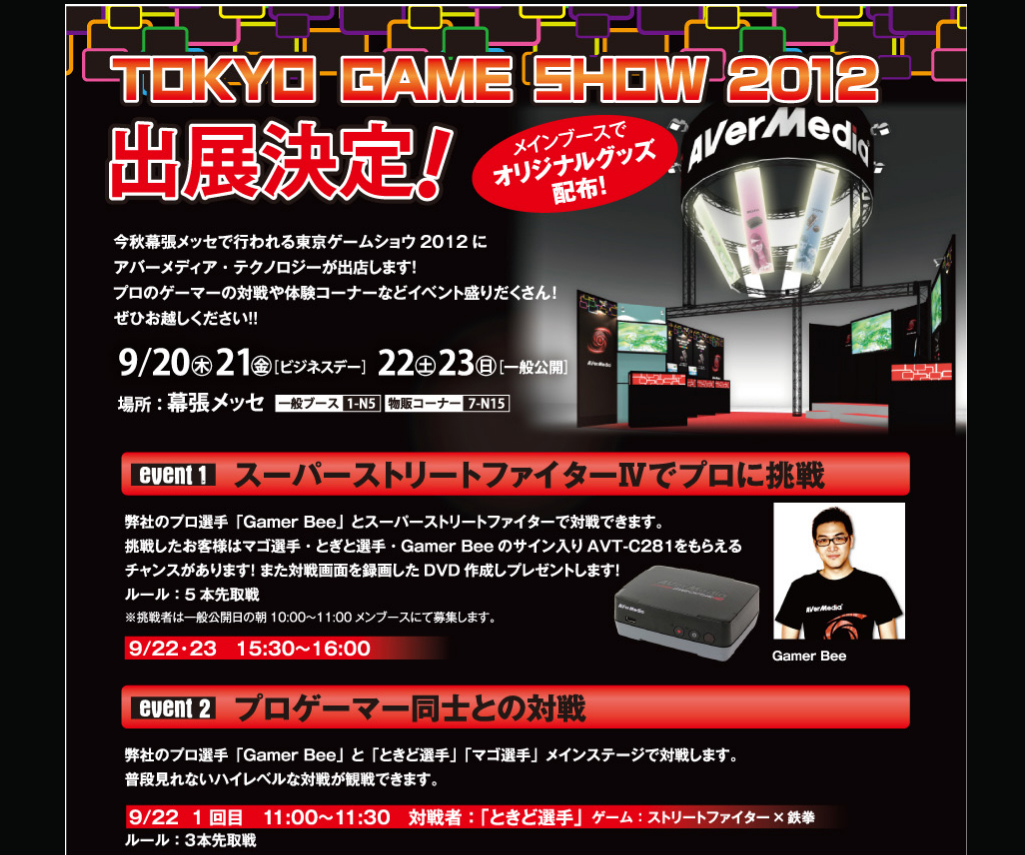 AVerMedia,TGS 2012の出展内容を公開。プロゲーマーとの対戦イベントに加えて,物販コーナーではキャンペーン価格での販売も
