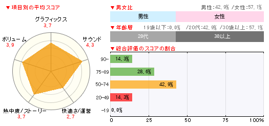 グラフィックス サウンド 快適さ/運営 熱中度/ストーリー ボリューム 4 4 2 3 3 -
