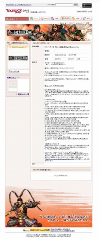 真・三國無双BBのプレオープンサービスに参加していて,ほかのプレイヤーと交流を深めたいという人は,Yahoo! Daysに会員登録し,公式コミュニティに参加してみよう。(TeT)