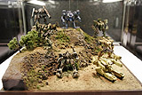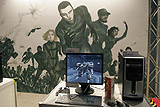 FMOブースは,左側を試遊ブース,右をイベントステージ"バトルコロシアム"という二分化された構成。左側の試遊ブースは,プレイステーション2版がプレイアブルな状態で20台が設置されており,各台にはコントローラはもちろん,キーボード,ボイスチャット,マウス(「FPSバトルスティック」)なども完備されていた。