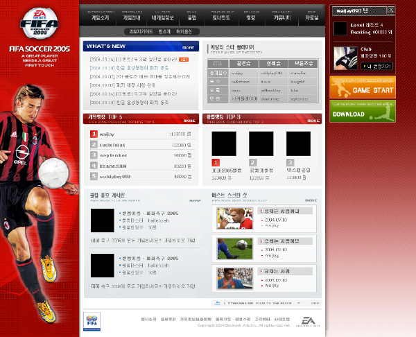 以前に「こちら」で紹介した,EA Korea社の「FIFA2005 Online」の公式サイトが「こちら」で公開された。同サイトは「FIFA2005 Online」についてはもちろん,これまでのFIFAシリーズの歴史が一目で見られるようになっている。これまでのファンもこれからのファンも一見の価値がある内容なので,ぜひとも見てもらいたいものだ。なおサイトの赤,黒,白を基調としたデザインは,それぞれが熱情,カリスマ,スポーツというFIFAシリーズを象徴する色であるらしい。