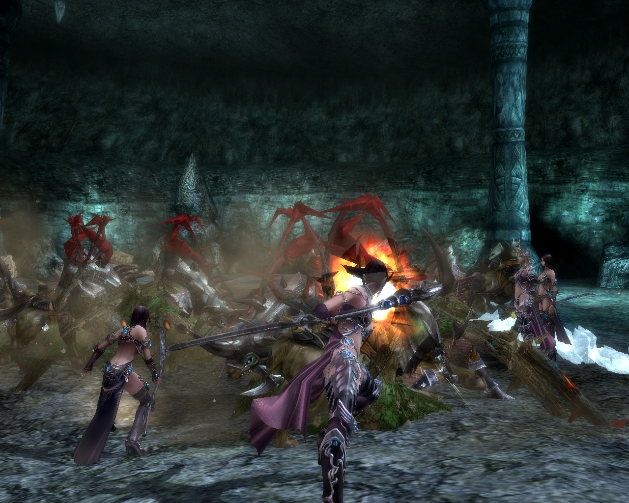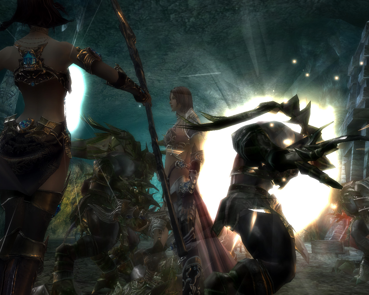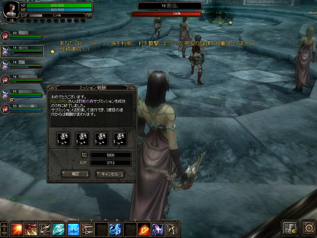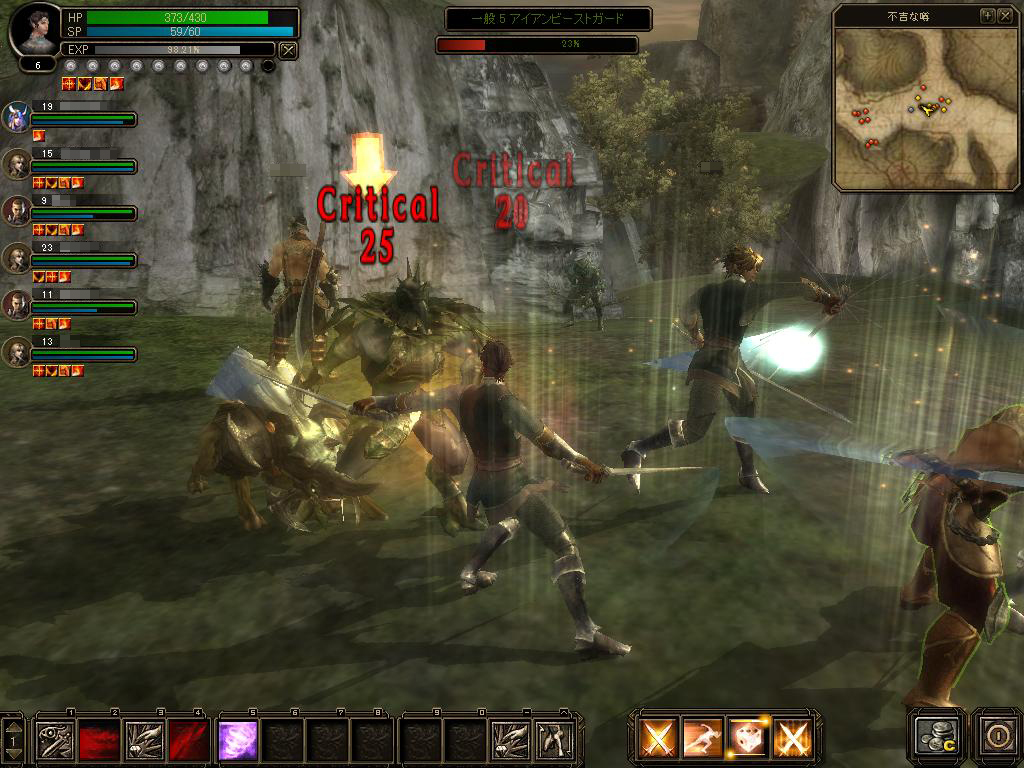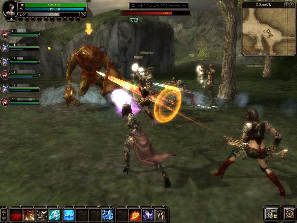 バトルゾーンで一度のプレイに要する時間は30分前後。道中にはモンスターがわんさかと待ち受けており,これを10人までのプレイヤー(5〜7人くらいが多いかな)が力を合わせ,ものすごい勢いで突破していく。行く手を阻む問題を解決するイベントがあったり,要所では強力なボスが立ち塞がっていたりもする。無事にクリアするとボーナスアイテムなどが得られ,また倒すモンスターの数が半端じゃなく多いため,レベルもグングン上がっていく。フィールドでのんびり狩りをするのとは,まったく違ったゲーム感覚である。