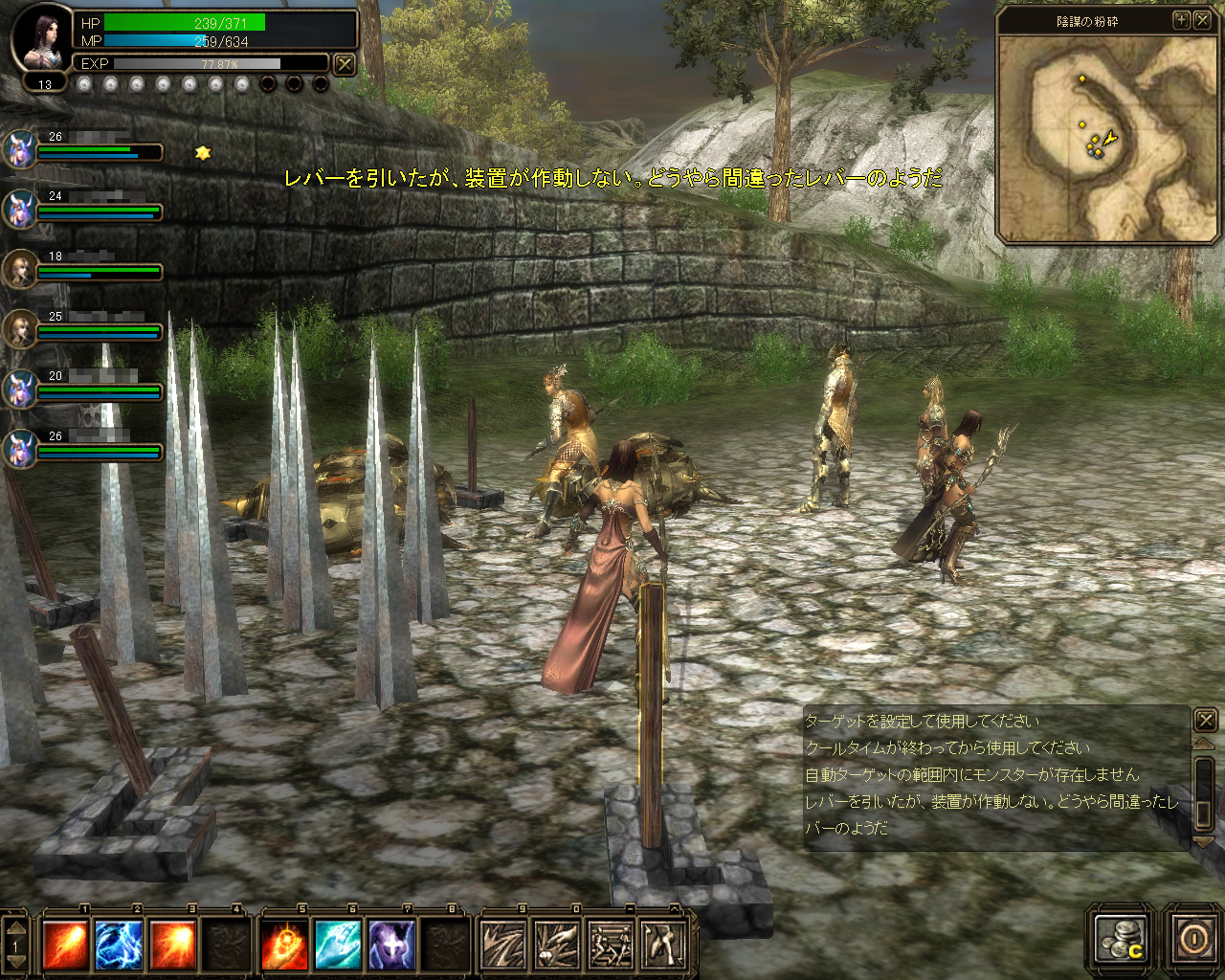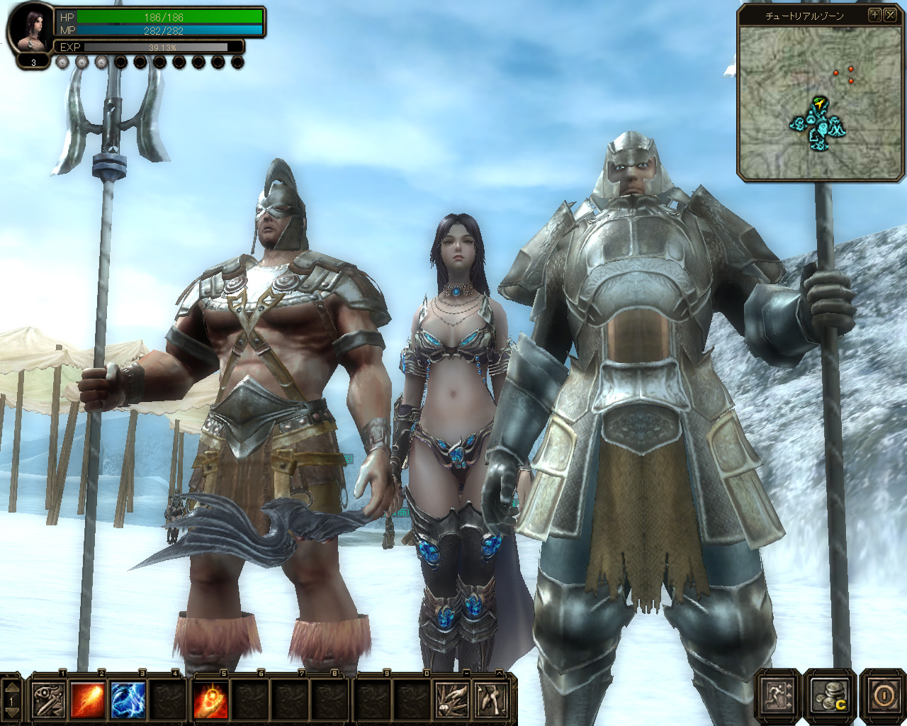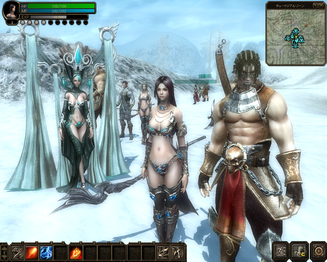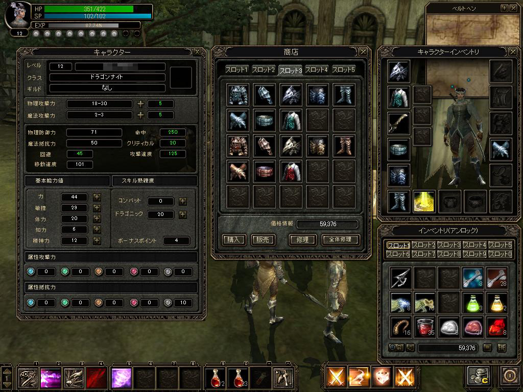 それではSUNの基本的なゲームシステムをざっくりと見ていこう。キャラクターの操作は,マウスクリックあるいはキーボードによるWASD式のどちらでも可能だ。そして12個のスロットに登録したスキルなどを繰り出して戦っていく。このあたりはオーソドックスなMMORPGから外れていないが,例えば敵をターゲットする方法が複数あって,連続した素早いターゲッティングが可能だったり,同一アカウント内のキャラクター間で共有倉庫を使えたりと,細かなところでプレイヤーへの配慮が感じられる。過去にMMORPGを何本か経験している人なら,プレイ中に感心することが多いかもしれない。