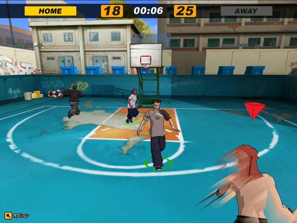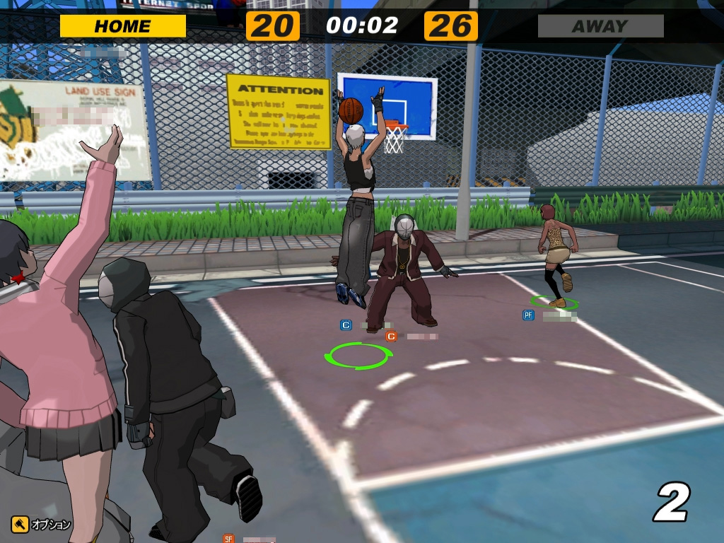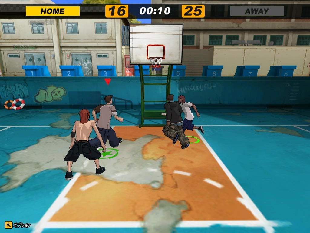 本作はストリートバスケットボールをモチーフとしているので、試合はハーフコートで行われる(ゲームモードでフルコートも選択可能)。ルールや試合の流れは通常のバスケットボールに準じており、攻撃側がシュートを決める、あるいは防御側にボールを取られることで攻守交代。また攻撃側が20秒以内にシュートを撃たなければならない「20秒ルール」なども適用される。その一方、ハーフコートの場合はゴールが一つしかないため、ボールを取って新たに攻撃側となったチームは一度ボールをパスやドリブルで3ポイントラインの外に出す必要があるなど、一部勝手が異なる部分もある。とはいえ,ビギナーの人が最初から厳密なルールを把握している必要はなく,「味方がボールを持っているから今は攻撃側か」くらいの判断ができれば十分だ。