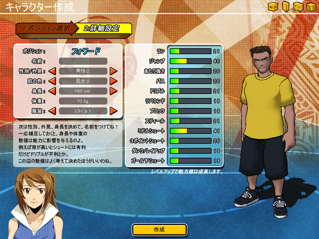 なお,試合を重ねてキャラクターがレベル15に達すると,フォワードなら「パワーフォワード」「スモールフォワード」といったようにポジションがさらに分岐し,レベル16からはアイテムやスキルが追加されるようになる。このへんの詳しい解説は,機会を改めて行いたい。