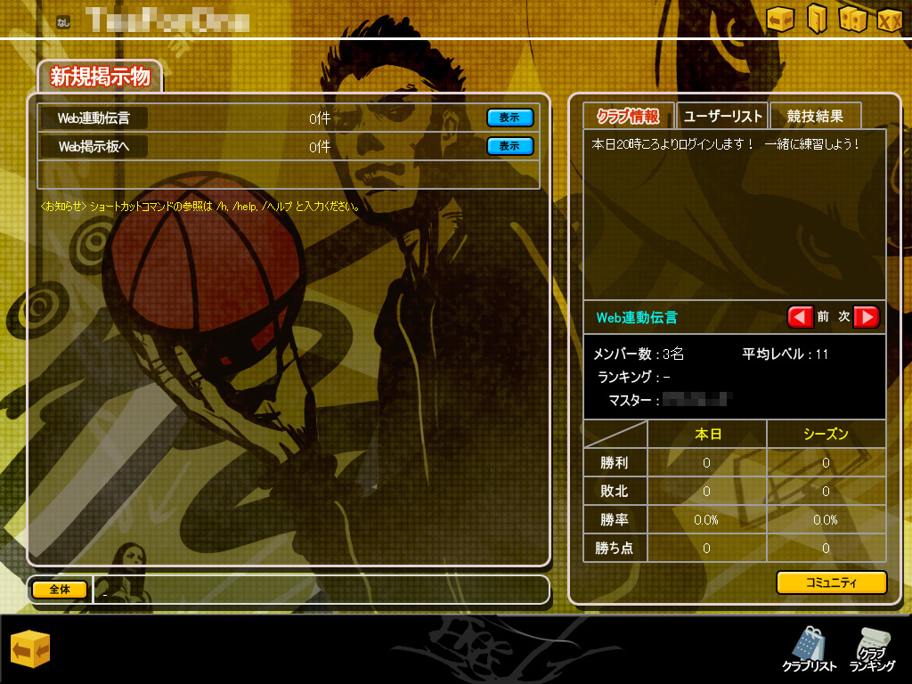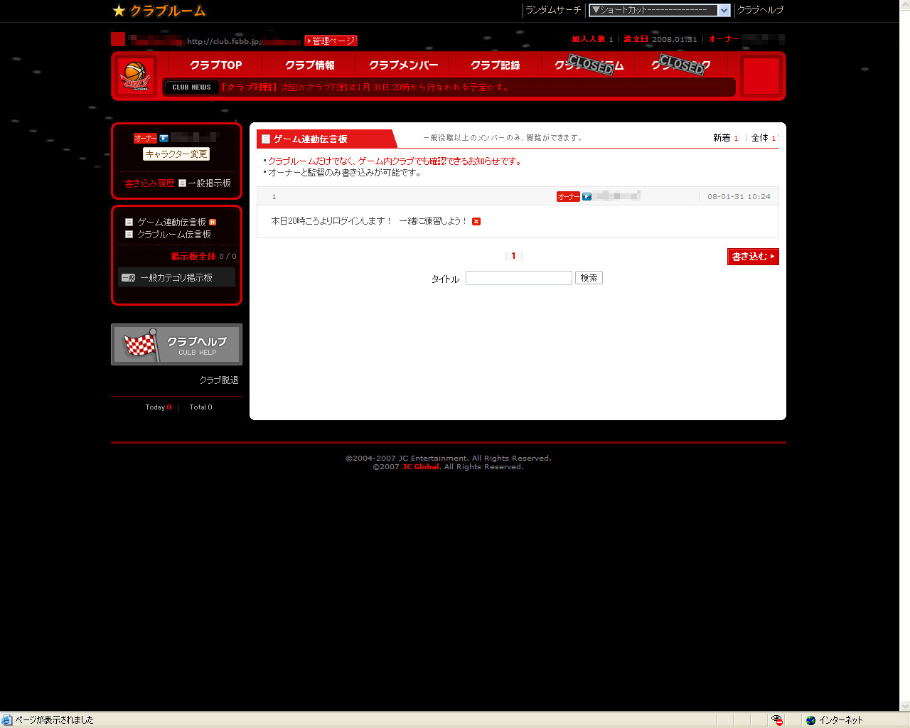 またクラブ画面では,クラブルーム掲示板および伝言板に新たな書き込みがあったかどうか確認でき,ボタン一つで該当のWebページを開くことも可能になっている。なお,連動伝言板に書き込まれたメッセージはゲーム内からも内容を確認できるので,当日の試合予定や練習開始時刻などを告知するのに非常に便利。ただし伝言板は,オーナーおよび監督にしか書き込み権限がない。