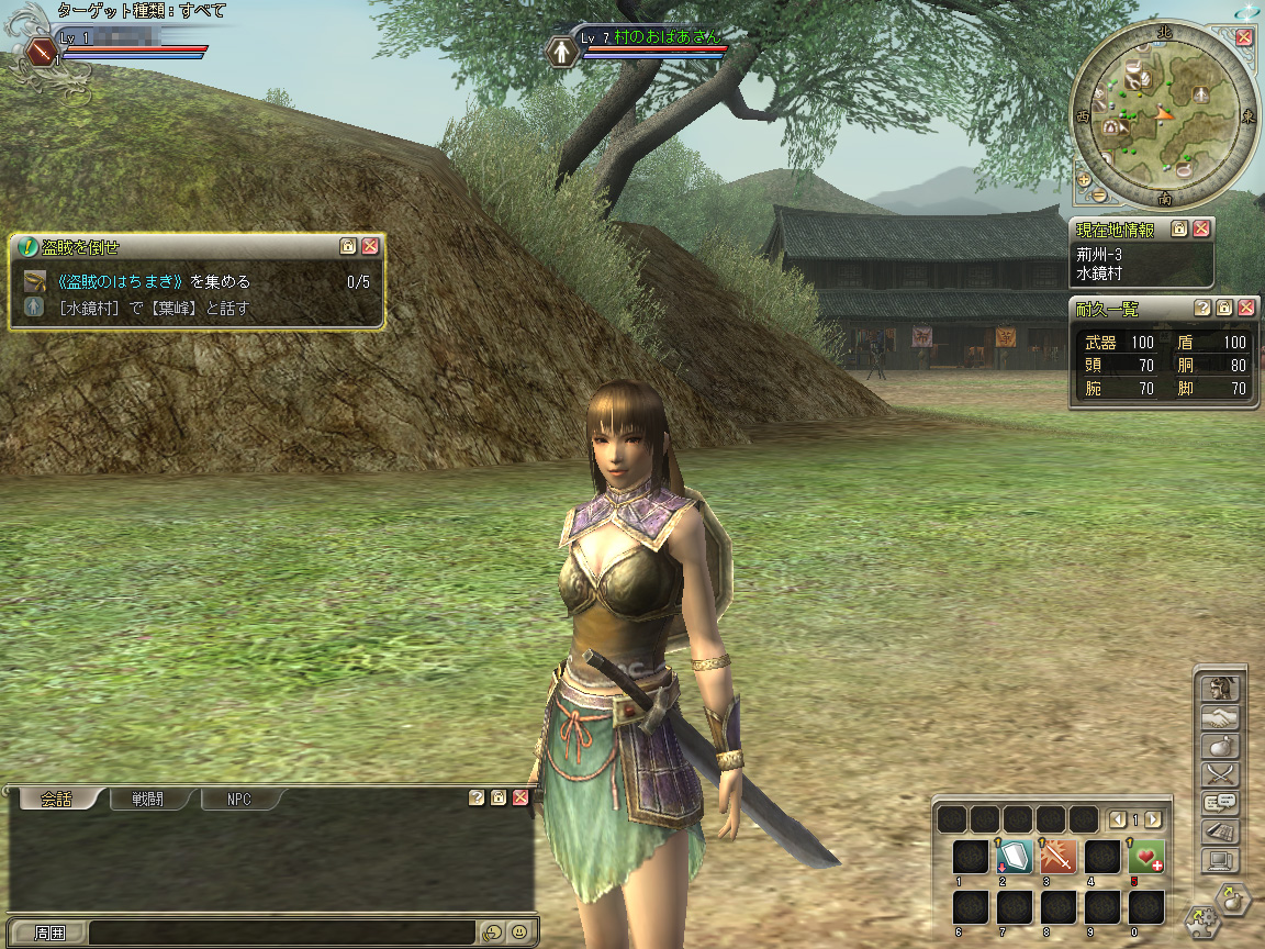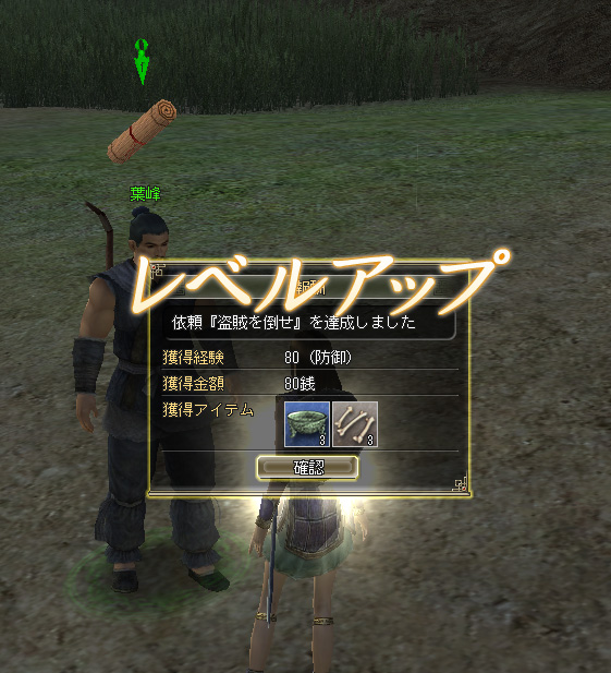 荊州盗賊は,倒されると「盗賊のはちまき」を落とす。盗賊を倒し続けていると,ほどなく5個の「盗賊のはちまき」が集まった。あとはこれを「葉峰」のもとに届ければ依頼は完了する。