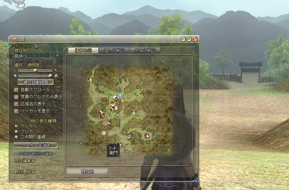 現在の依頼の目的地を確認したいときに便利なのが「地図上に目的地を表示」する機能だ。「依頼一覧」のウィンドウを開き,任意の依頼を選択してから下の方にある「地図に目的地を表示」ボタンをクリックすると,画面右上のミニマップと「地図」ウィンドウの両方に目的地の場所を示すアイコンが表示される。