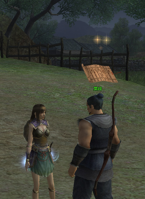 依頼を引き受けるとNPCの頭上の閉じた竹簡は“開いた竹簡”に変化する。開いた竹簡を頭上に浮かべたNPCは,依頼達成の報告待ちであることを意味している。依頼の報告は,多くの場合,その依頼をくれたNPCに対してすることになるが,届け物などの場合は届け先のNPCの頭上に“開いた竹簡”が現れる。いずれにしても報告や配達の際にはこの“開いた竹簡”を目印にするとよい。
