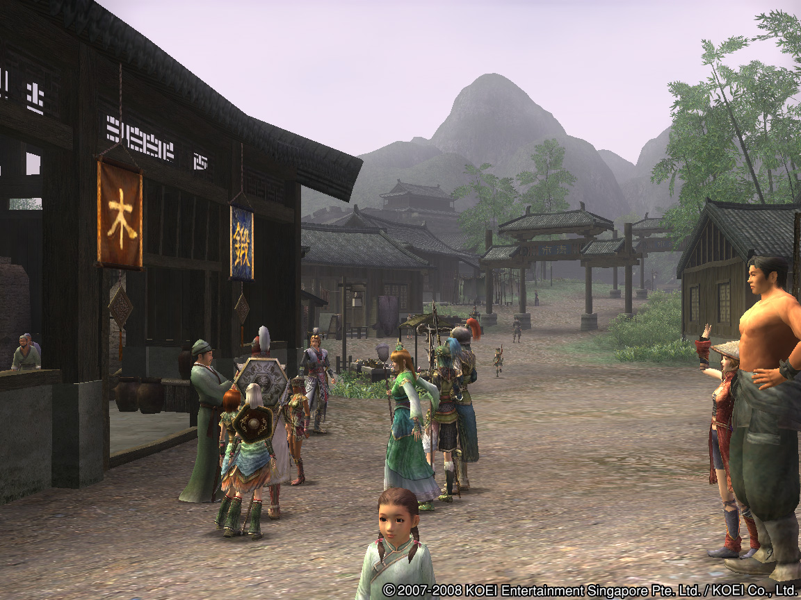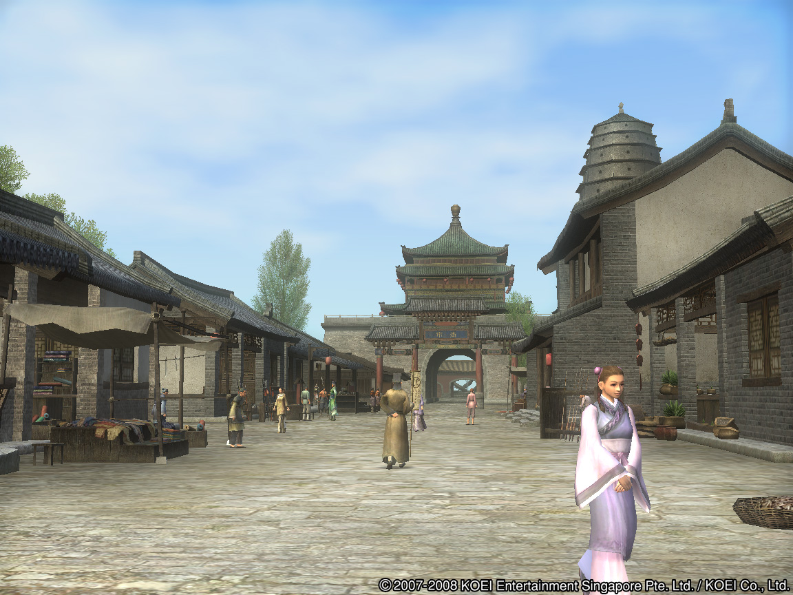 「長安」は三國志 Onlineのゲーム世界の中心地だ。多くのプレイヤーは,ゲームに慣れてキャラクターもある程度育ってくると「魏」「呉」「蜀」いずれかの勢力に仕官する。三勢力にはそれぞれその国の主要都市があり,プレイヤーは所属勢力の主要都市を毎日のように利用することになるが,それと同じ,あるいは人によってはそれ以上の頻度で長安にも足を運ぶことになる。三國志 Onlineでは,合戦もしくは部曲戦でしかプレイヤー同士の戦闘は行えないので,違う勢力のプレイヤーが一つの町にいても問題はない。