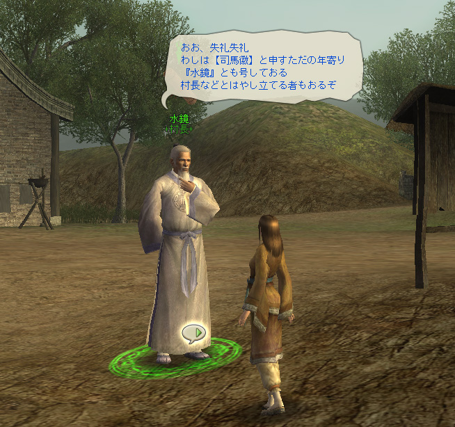 水鏡村の村長「水鏡」は,ただのおじいさんではない。三国志の登場人物の一人【司馬徽】だ。彼は仕官せずに荊州で学問を教えていた人物で,人の才能を見抜く能力に長けていたという。プレイヤーはその彼に才能を見いだされて,この乱世でのキャリアをスタートさせるというわけだ。三國志 Onlineの中では,彼は新参プレイヤーに対してさまざまな助言をしてくれるのに加えて,数多くの依頼も抱えている。初めはもらえないが,いくつかレベルが上がるともらえるようになる依頼もあるので,ときどき訪ねてチェックするといいだろう。