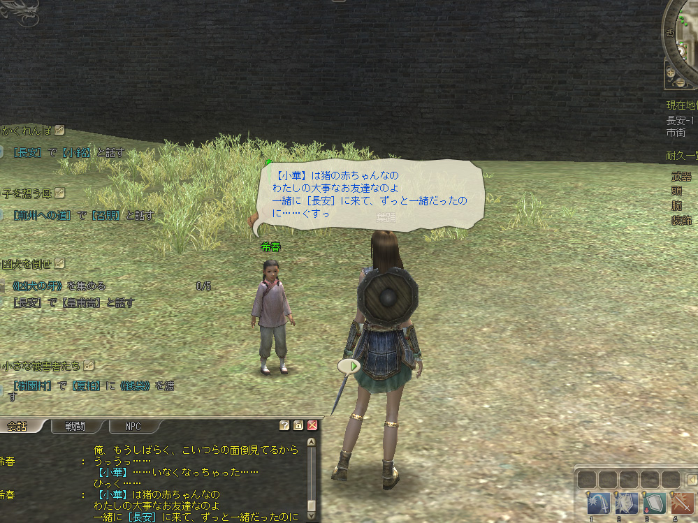 以前は,このレベル帯においても「キャラクターを育てるのにもっとも便利なのは依頼である」といえるくらい長安と司隷には依頼が多くあったはずだが,現在ではそれほど見つからない。数個こなしたところで近場では手頃な依頼が見つけられなくなってしまった。うむ,困ったぞ。現在のこちらの武器能力レベルは14〜15といったところ。依頼が配置されていないということは,それ以外の方法でキャラクターを育てろということだと思うのだが……,さてどうしよう?