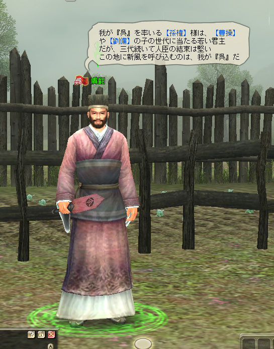 呉の募兵役の側にいるのは【虞翻】という文官だ。彼は能力を高く評価されつつも歯に衣着せぬ発言でたびたび君主の不興をかったといわれる人物である。