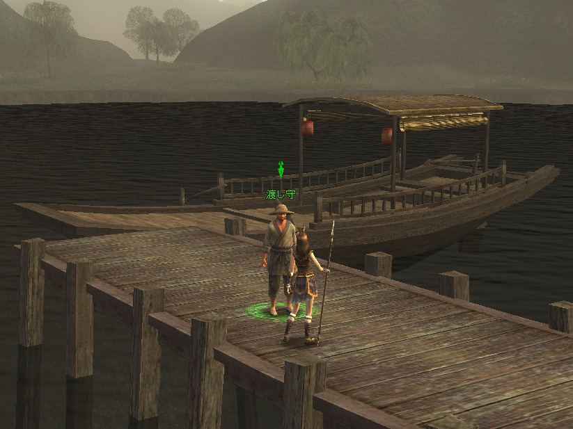そして呉の都「建業」に向かう。建業のある「揚州」に行くは荊州を経由する必要がある。だから長安からはちょっと行きづらい……などということはなく,随所に配置されている馬屋のおかげでゲーム内の移動は全体的にかなりラクだ。マップで揚州にもっとも近い荊州の馬屋を調べてそこにジャンプ。あとは走って揚州に入って建業を目指す。渡し守に話しかけて川を渡ったら,もうそこは建業の城門のすぐそばだった。