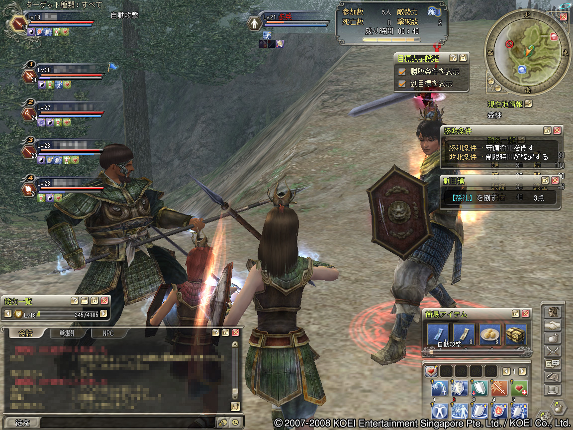 軍略は徒党を組んで適切な強さの敵と戦うコンテンツだ。ここで筆者は三國志 Onlineで初めて,戦闘時における役割を意識しつつ,グループで敵を倒していくという方向でプレイをした。