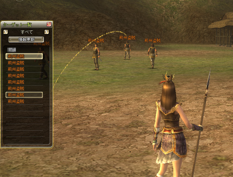 司隷にいる敵の強さはだいたいレベル10から20までだ。長安を出てすぐのところにいる狼などの動物系の敵は人気があるようで,通りかかると,たいてい数人がハンティングの最中だ。基本的には交通の便のいいところ,つまり近くに馬屋があるところは,やはり人気が高い。敵キャラクターの再出現は結構早いので,“敵不足”の問題に遭遇することはなかった。