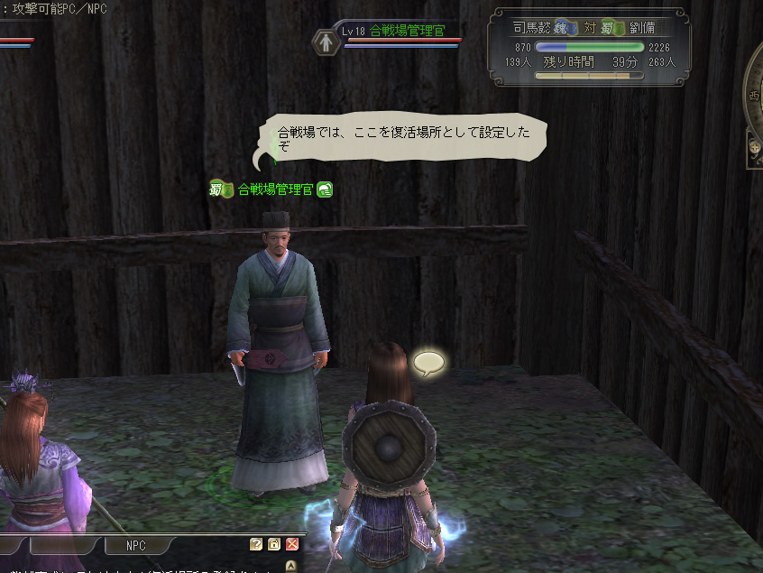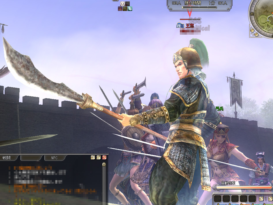 有名武将と肩を並べて戦えるというのは,いかにも三國志 Onlineらしいフィーチャーの一つである。武将はかなり強力なNPCで基本的には倒すことはできない(と思われる)。そのため「武将/客将には,出てきてもあまり関わらずに,PCとの戦いに集中したほうがいい」という意見もあるようだ。