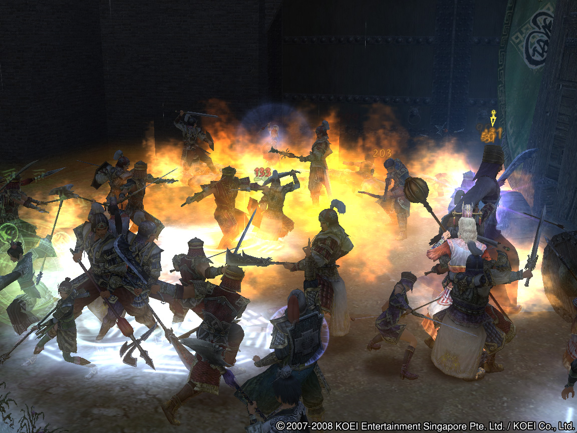三國志 Onlineの合戦では,非常に多くのプレイヤーキャラクターが同じところに集まって戦いを繰り広げる。数百人同士の戦いも珍しくはなく,この大人数でのぶつかり合いは本作の非常に大きなセールスポイントとなっている。