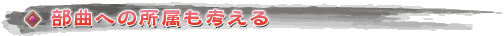 そのほかにも,普段から武将に「納入」をすることで合戦時の自軍のパラメータを上昇できたり,部曲に訪れる「客将」は合戦時に助けてくれる(部曲が合戦に参加しないのであればあまり意味がない)ものであったりと,ゲームの諸要素には合戦と何らかのかたちで関わりのあるものが多い。