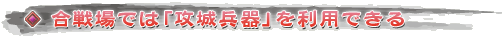 投石車や衝車は最大5人のPCが乗り込んで動かす。これら兵器の操作は一人の操者が行うが,残りの4人のプレイヤーが操者と同じ方向の移動キーを押している場合,その動作の速度が上がる。