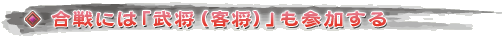 将軍として参加した主要武将,および部曲に一時所属中の客将は,戦場でプレイヤーたちとともに戦ってくれる。かれらは風のように現れては,しばらく戦って颯爽と去っていく。