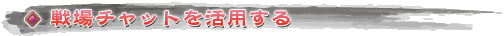 合戦場では合戦場専用の「戦場」チャットが使用できる。このチャットには有志によって作戦の提案や状況の報告などが頻繁に流される。この情報は“大いに活用すべき”だろう。ただ,サービスインからまだ日が浅く,すべての人が手探りで合戦のことを研究している現状においては,どの意見が的を射ていて,どの意見がそうではないのかは,正直なところ分からない。だがこれらが思考や判断の材料になることは確かだろう。どのような性質の材料とするかは各人に委ねられている部分だ。