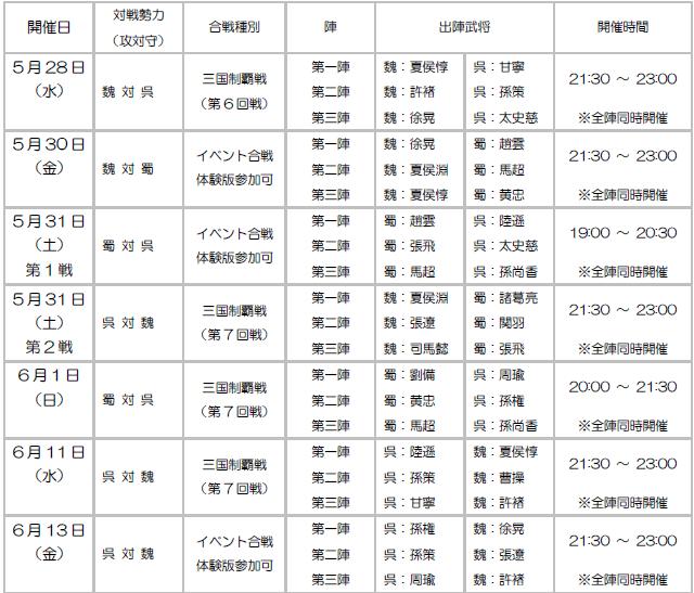 「三國志 Online」,新兵器が投入される6月の合戦スケジュール