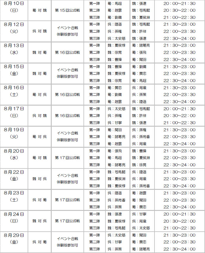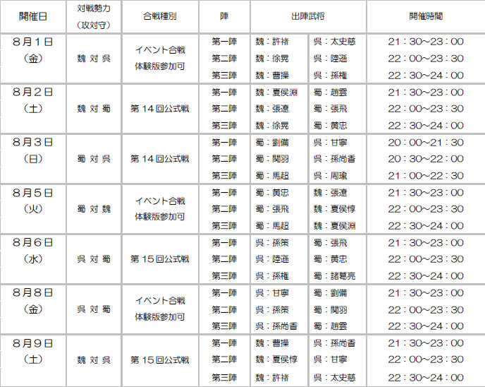 「三國志 Online」7月度アップデート実施&8月の合戦スケジュール発表