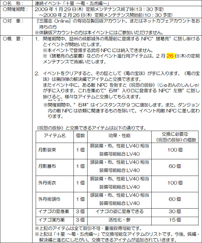 「三國志 Online」連続イベント第二弾「十星 〜蜀・五虎編〜」開催