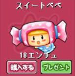 特殊効果スイートベベラブウイルスをもっと広める為にこの世に生まれたスイートベベ!でもその正体は謎に包まれています。スイートベベは今日もラブウイルスばらまくため、アイテムレースに現れちゃいます。アイテムスロットが増えます。