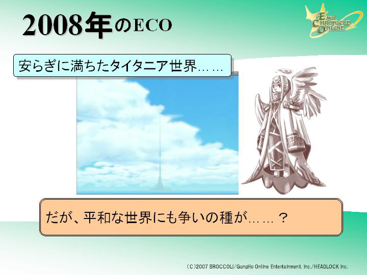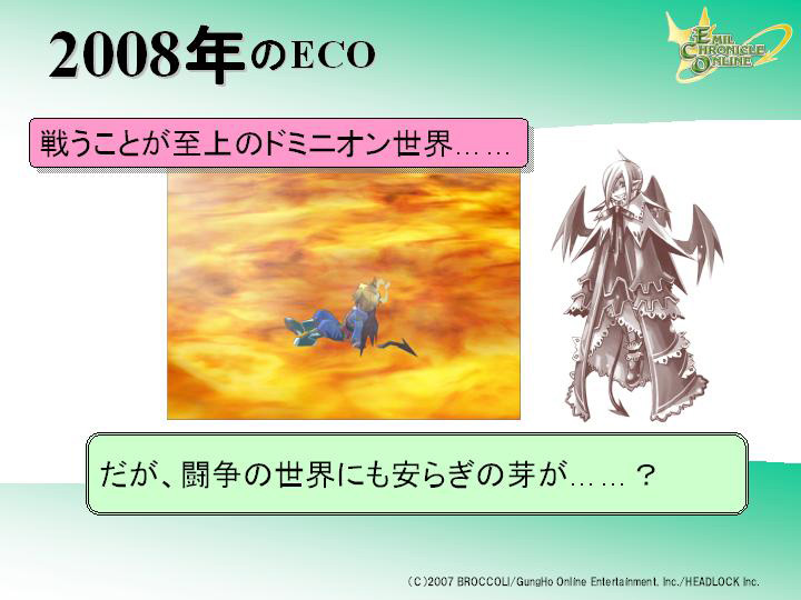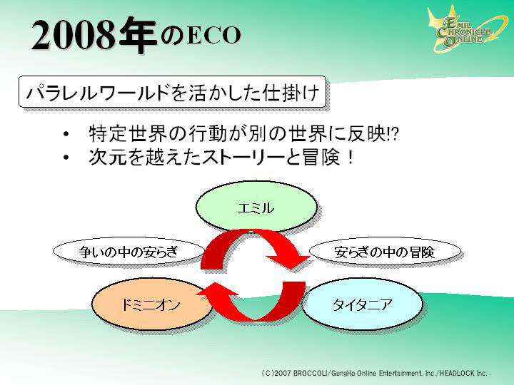 危機意識がコミュニティの活動を活性化する,と。それは確かに,ECOのゲームコンセプトらしい協力のあり方ですよね。新しいストーリー要素でもあるわけで。