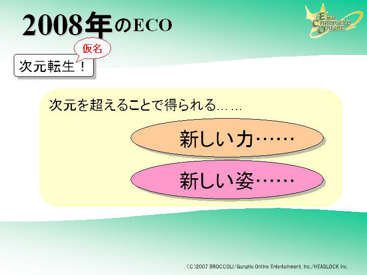 ゲームの機能が一部失われると聞くと,普通あまりよい気分ではないと思いますが,ECOの場合は特殊な下地が出来ていると思うので,こういうやり方のほうが結束力を呼び起こせるような気がします。逆にこういう形でないと,なし得ない事柄もありますよね。