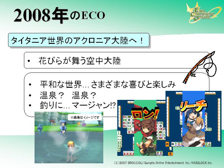 一方そこは「喜びの世界」でもあるので,ECO祭で「インゲームアトラクション」と表現したとおり,ゲーム内で何かいろいろできるものを導入していきたいですね。