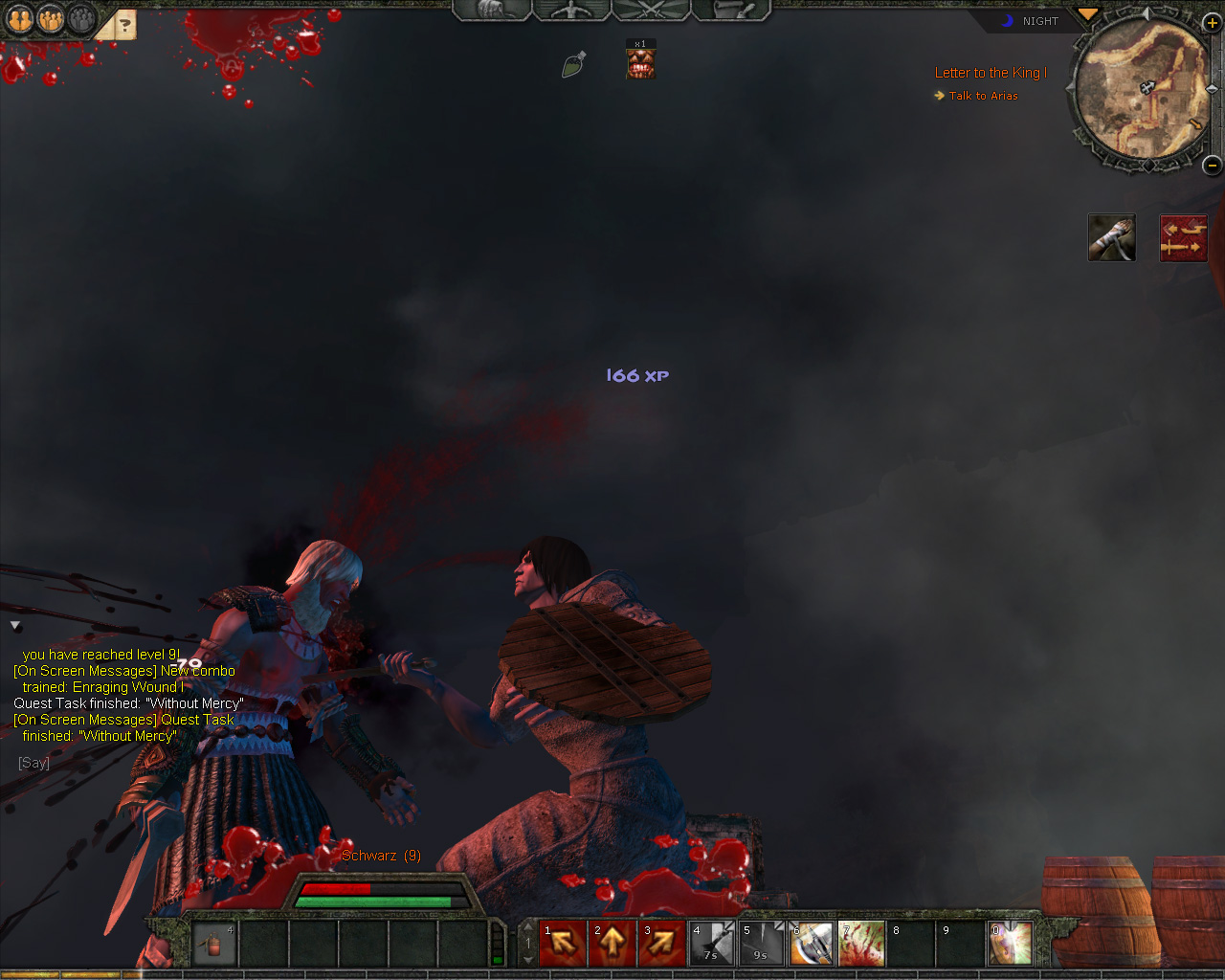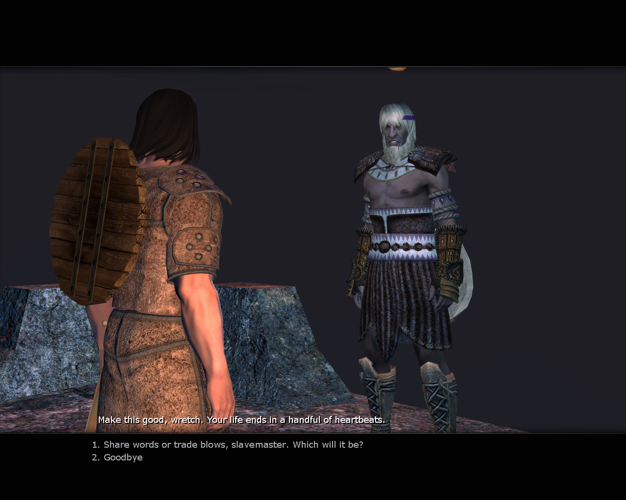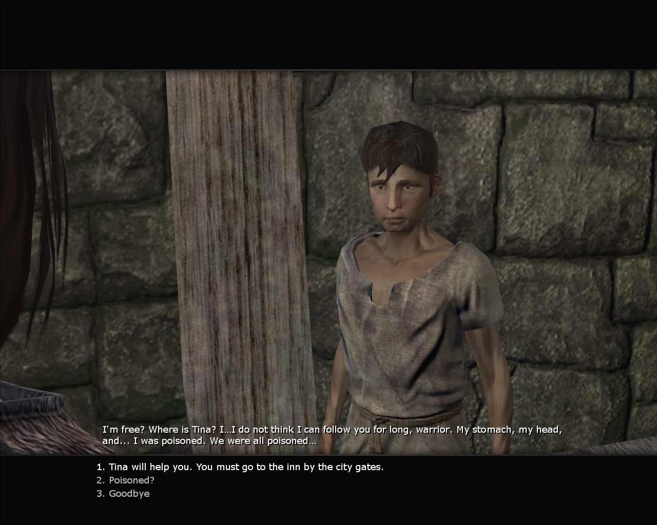 Nadiniは,俺がStromの手下ではないことを一目で見抜くという,侮れない眼力をもったばあさんだった。俺の記憶と戦いの技術を取り戻すには,レジスタンスの一員であるSigurdの手伝いをしろという。そう,宿屋でカウンターにいたあのオヤジだ。その昔は海賊として鳴らし,あのコナン王とともに戦ったこともあるという古強者らしい。