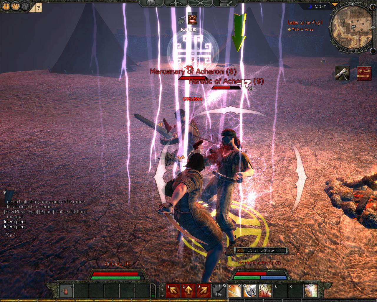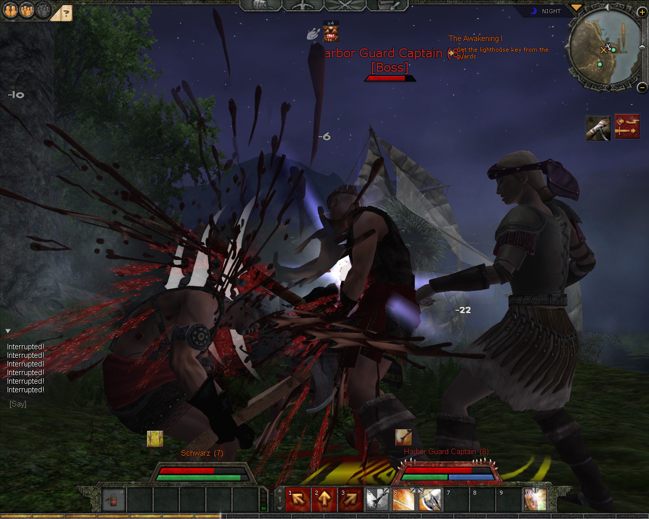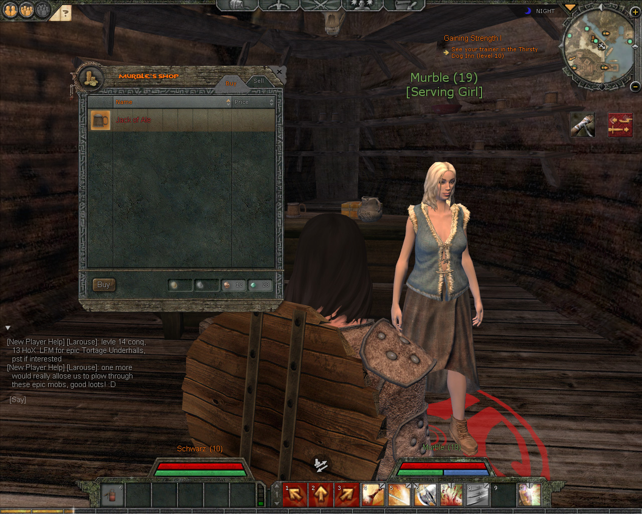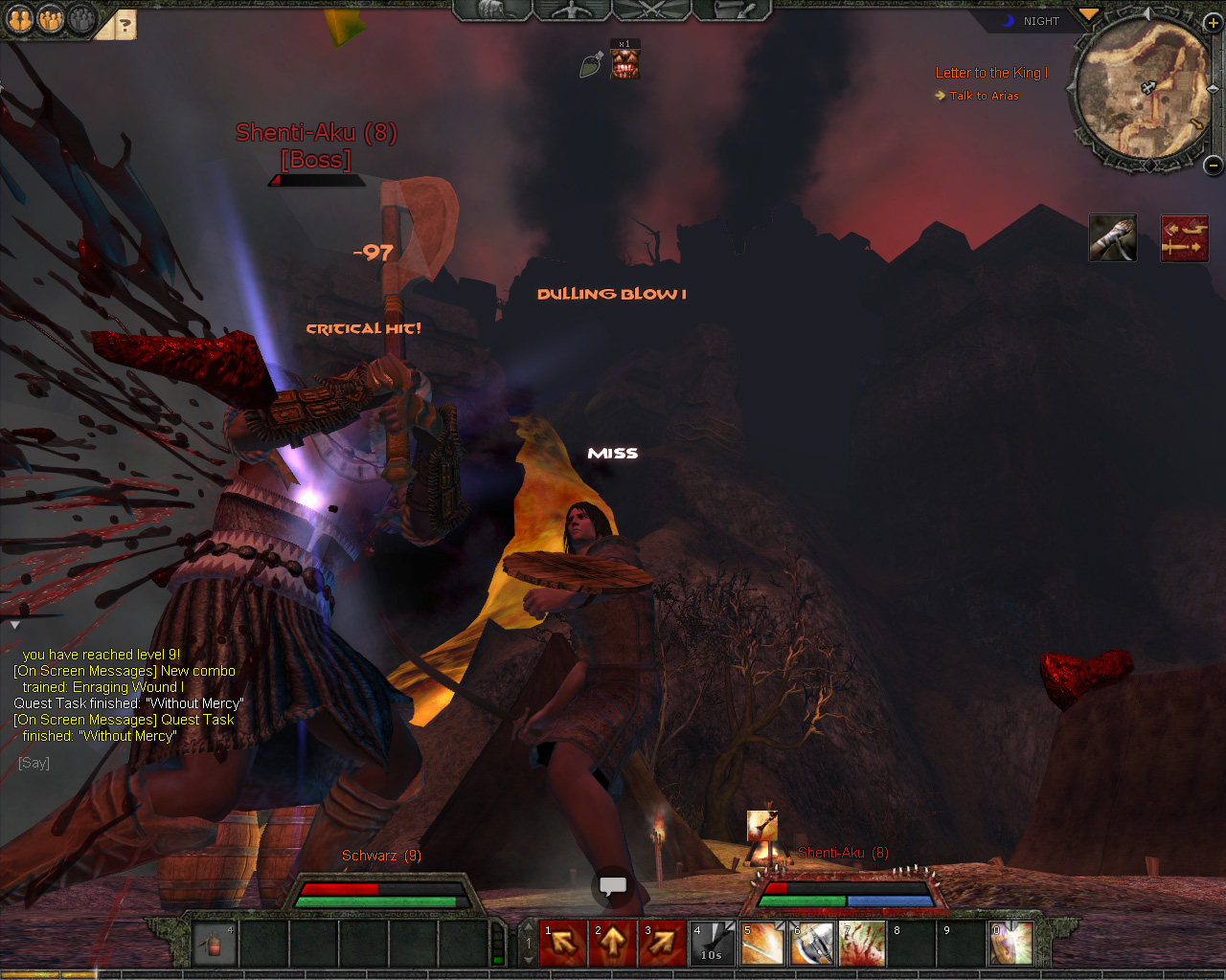 Nadiniは,俺がStromの手下ではないことを一目で見抜くという,侮れない眼力をもったばあさんだった。俺の記憶と戦いの技術を取り戻すには,レジスタンスの一員であるSigurdの手伝いをしろという。そう,宿屋でカウンターにいたあのオヤジだ。その昔は海賊として鳴らし,あのコナン王とともに戦ったこともあるという古強者らしい。