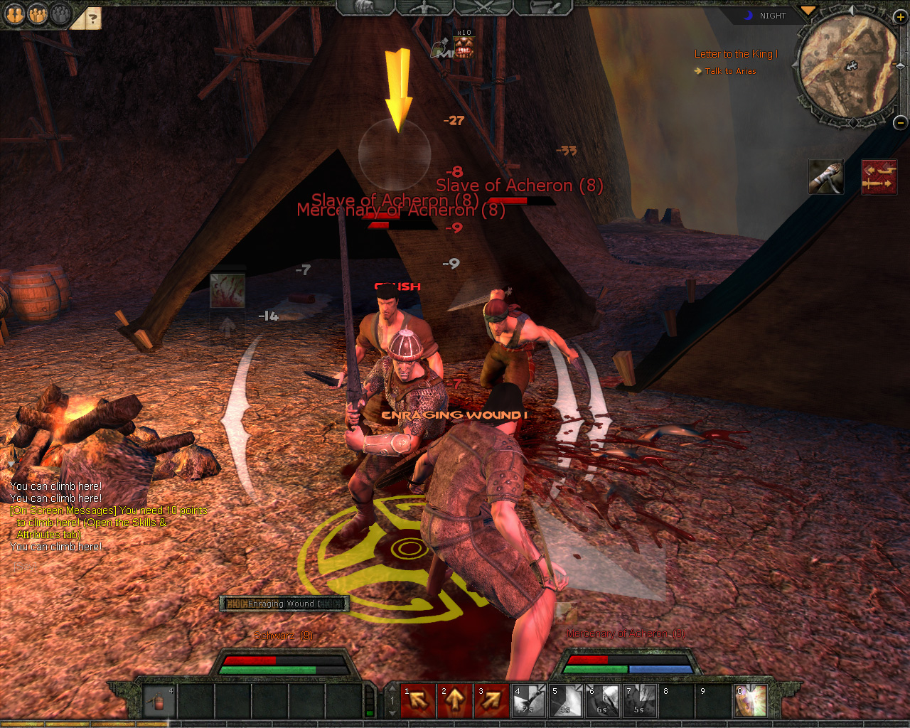 Si-Khuと話してみると,どうも彼の父親が砂漠で見つけてきたという古い巻物がすべての鍵のようだ。ルーン文字で何事かが記されている巻物らしく,Si-Khuは死んだ父親にそれを託されTinaのところへきたという。俺はそれをAriasに見せるべく,彼の元へと急いだ。そしてAriasから驚くべき話を聞いたのだった。