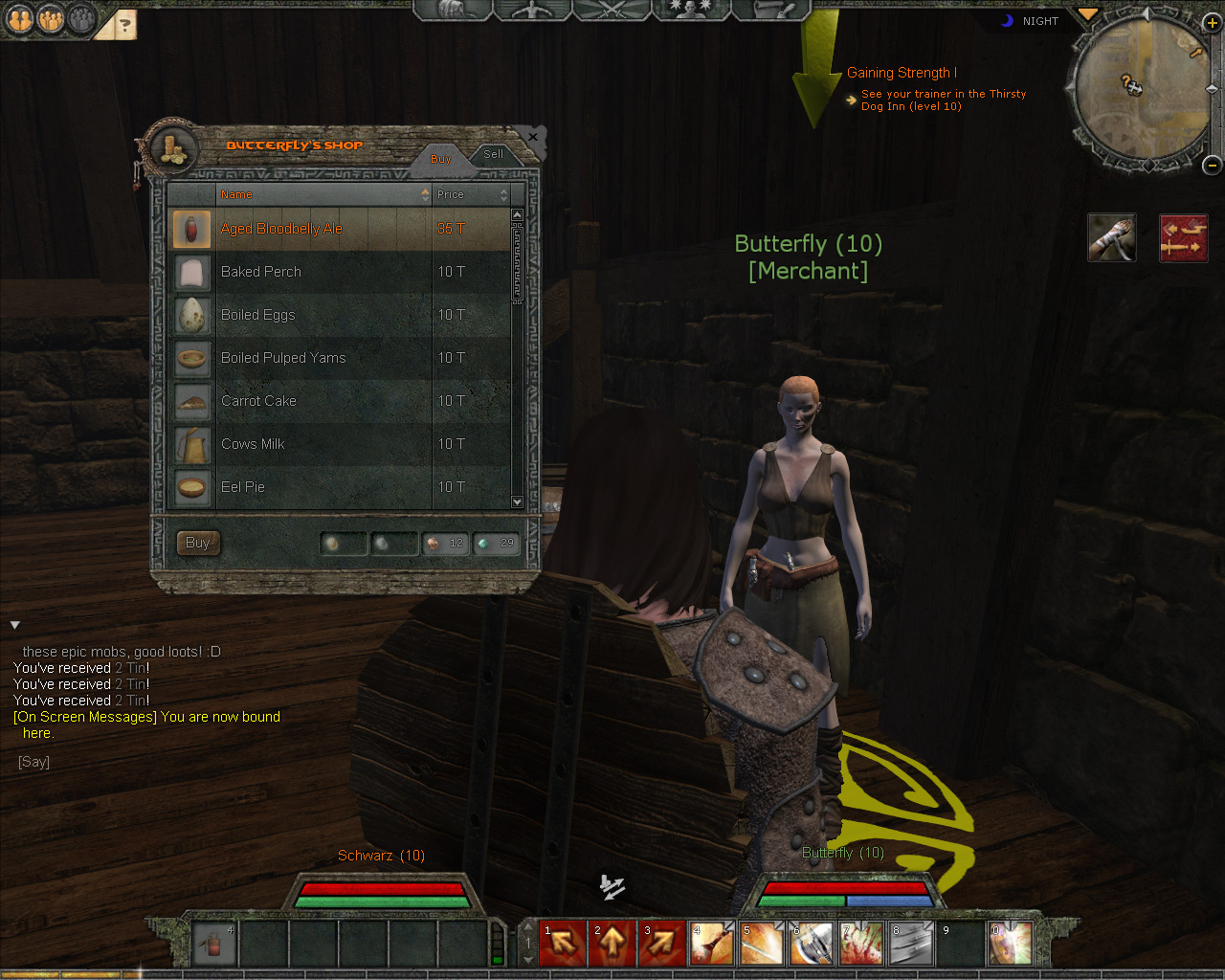 Destiny Questに入ると,街の広場にいた商人がみんないなくなってしまう。アイテムの売買には,宿屋のカウンターの奥にいるMerchantのButterflyか,White Sands Isleへ行く小船に向かう途中にある巨大な船の建物の中にいるServing GirlのMurbleを利用しよう。
