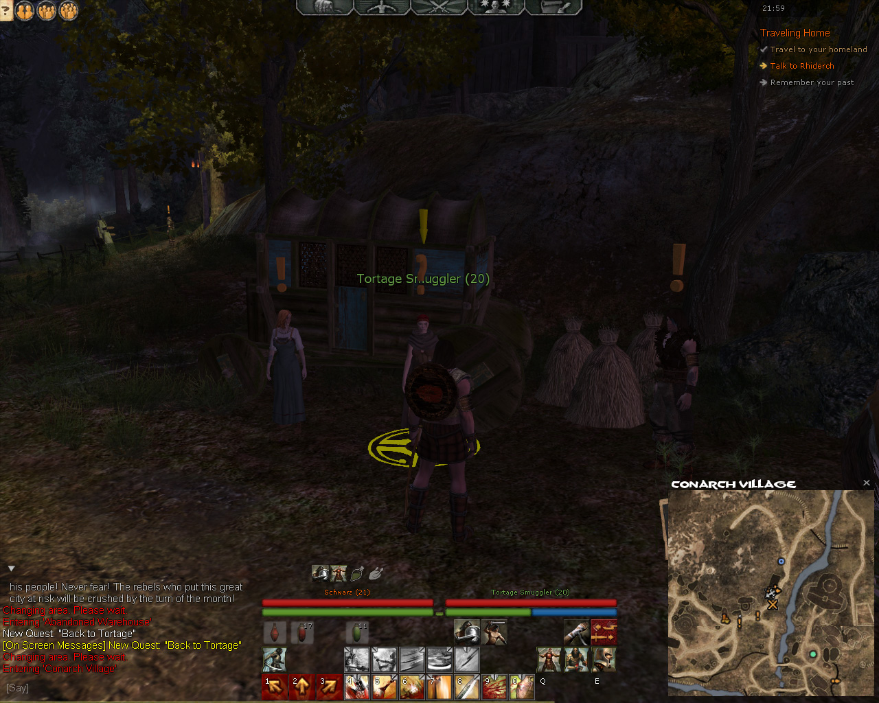 この時点で,まだクエストが残っているなどの理由でTortageに戻りたい場合は,Rhiderchの向かい側に立っているTortage Smugglerに話しかけよう。